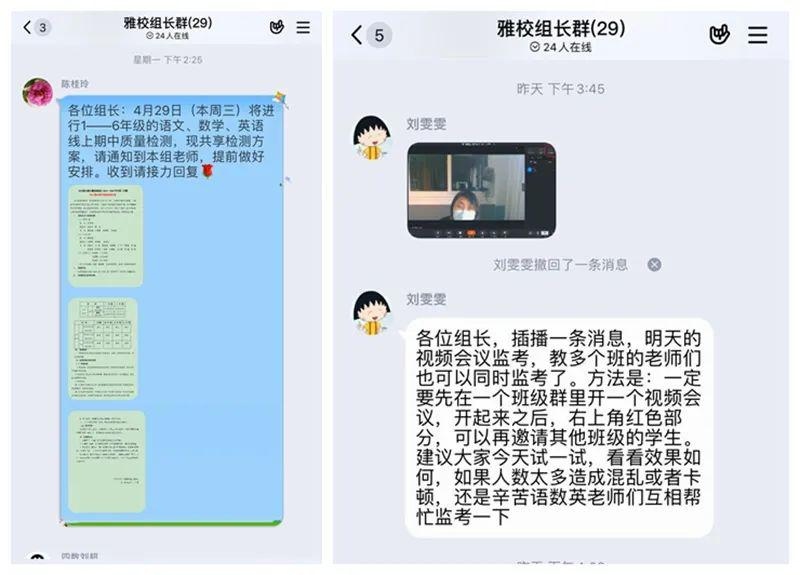 线上检测为校园办学历史上初次。 为确保检测顺利进行,校园教务处对线上检测的考试时刻、考试方法及具体组织、各科试卷的出题及审阅、考后阅卷等作业进行了具体的组织和布置。本次检测采纳钉钉视频会议直播的方法:一切学生翻开摄像头,教师线上监考,学生在没有家长陪考的状况下诚信考试。各学科教师与家长、学生联动,提早进行直播测验,为线上检测做好了充分预备。